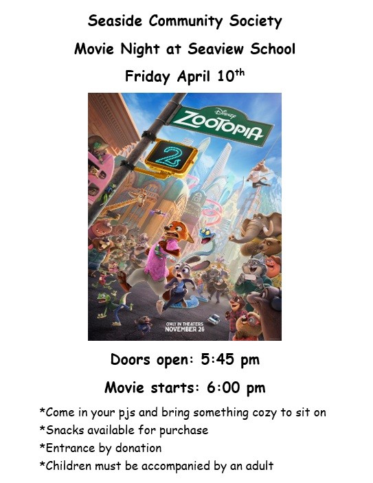 Doors open at 5:45 PM, Movie starts at 6:00 PM. We have a small concession of treats and juice available for purchase